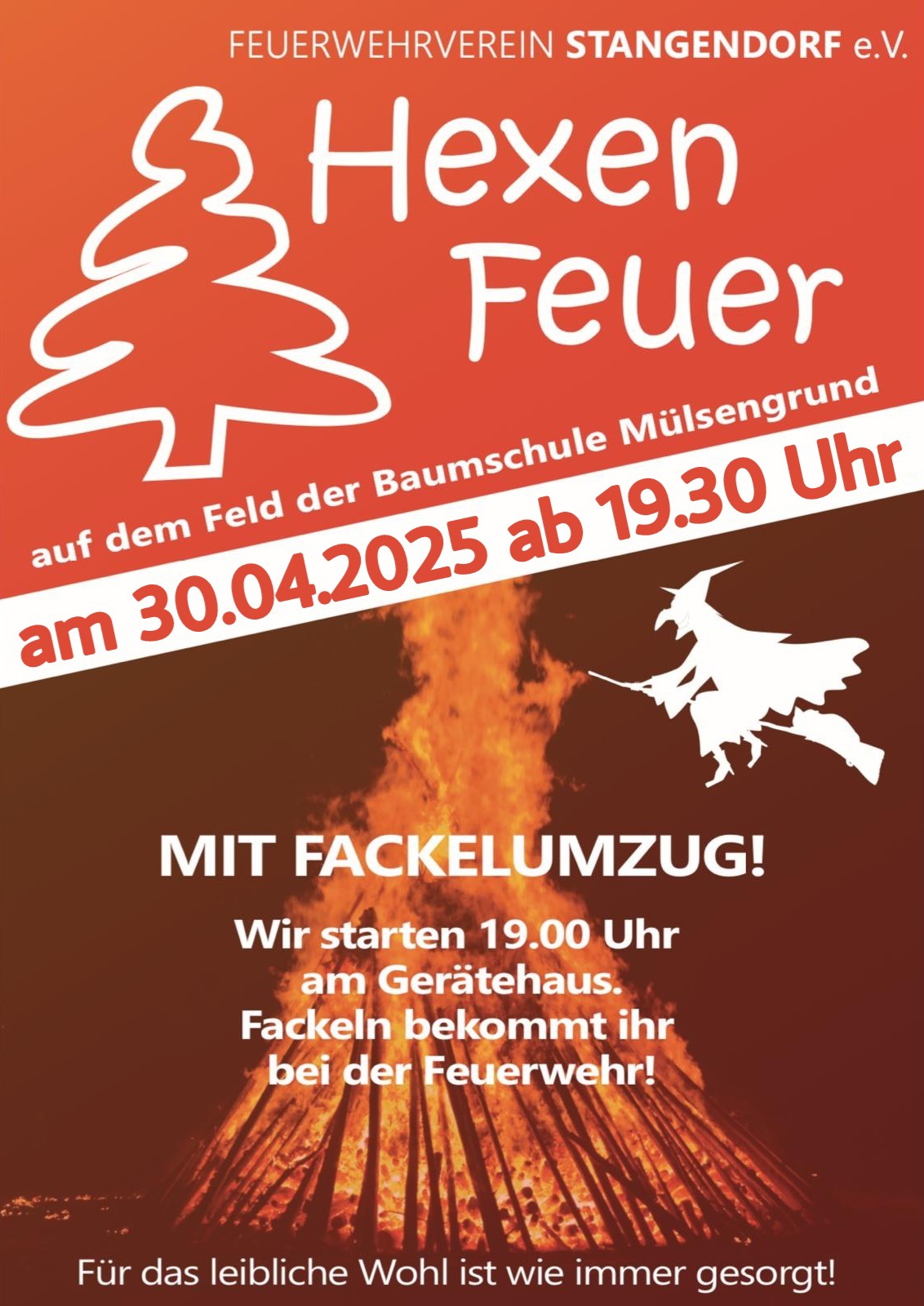 ab 18:30 Uhr Start am Gerätehaus Feuerwehr Stangendorf (Am Feuerwehrhaus 6a) mit Fackelumzug